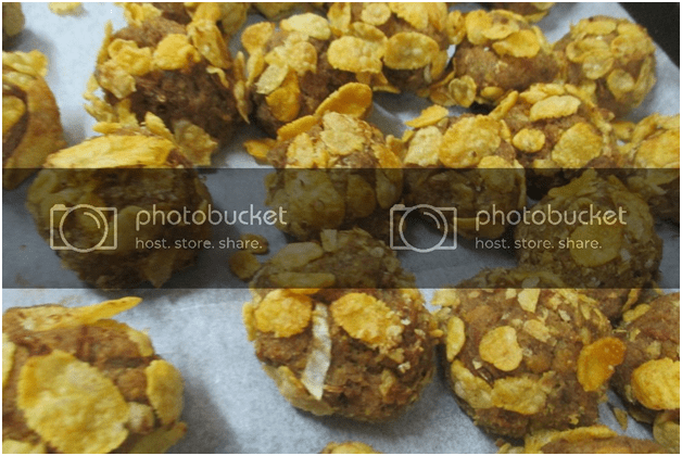 Yu Siyang put the tuna mixed with olive oil, nutmeg, black pepper and salt aside, found the corn flakes from the cupboard, put it on the chopping board, washed his hands, put on disposable gloves, and started pinching tuna into small animals, then put the balls on the corn flakes[4].