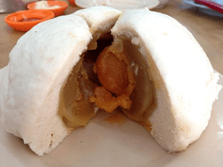 The stuffing of buns was made with salted egg yolk and lotus seed paste, and some fresh milk was added to the bun skin to make the skin looser, so when it was steamed, it would have a delicate fragrance.