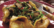 In this manner a table of ten dishes, with meat and vegetables were prepared, which surrounded the largest plate in the middle, which was filled with lion maned mushrooms and tofu.