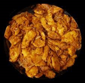 The dried toon was chopped and divided into two parts, one part was mixed with the marinated chicken, and it was fried until golden, after the pan was drained, it was mixed with the other part of toon and placed on a slate plate, the color was golden, the chicken breast was tender and smooth, the toon flavor was outstanding, and it was fragrant but not greasy.