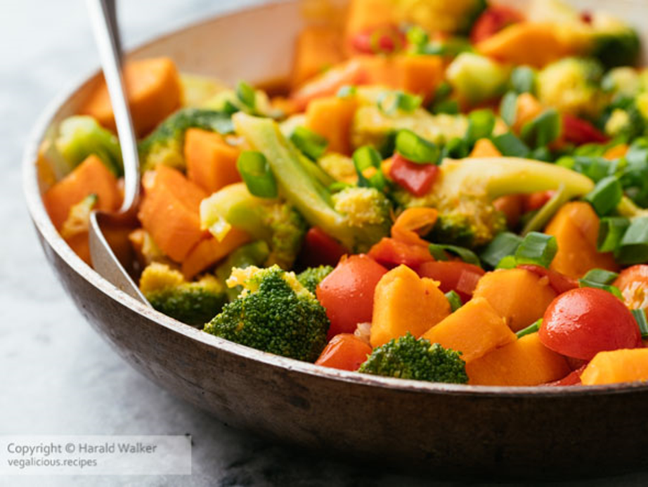 The three ‘meat’ dishes were followed by vegetarian dishes. Stir-fried broccoli with yam[3]. He washed them and cut both of them first. He then blanched the broccoli. He heated the oil in a pan and added ginger and garlic, and sauteed red pepper until fragrant. He then added yam and stir-fried until cooked. He then added broccoli, stir-fried it and served it.