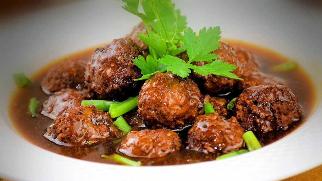 Beef balls, made of beef and pork, had a soft and flexible texture, firm and elastic, and tasted salty and refreshing.