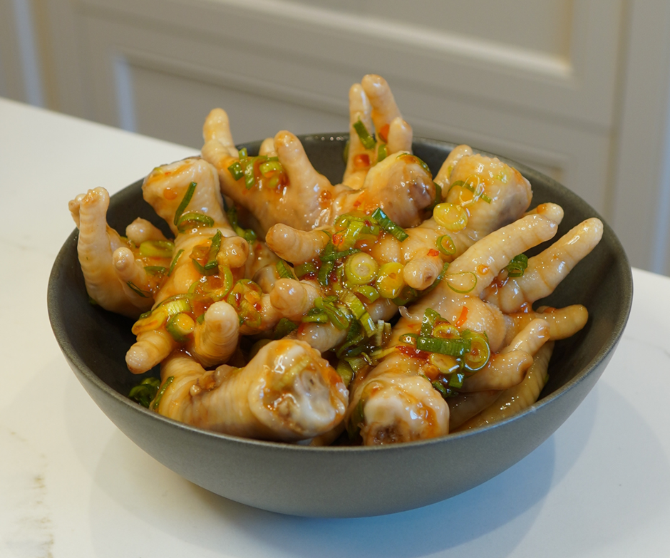 The second cold dish was pickled pepper chicken feet[2]. When it was served on the table, everyone almost didn’t react.